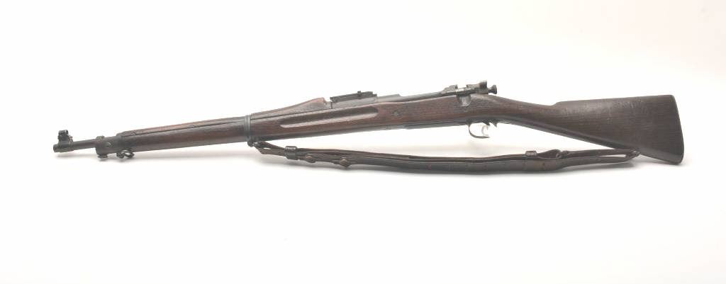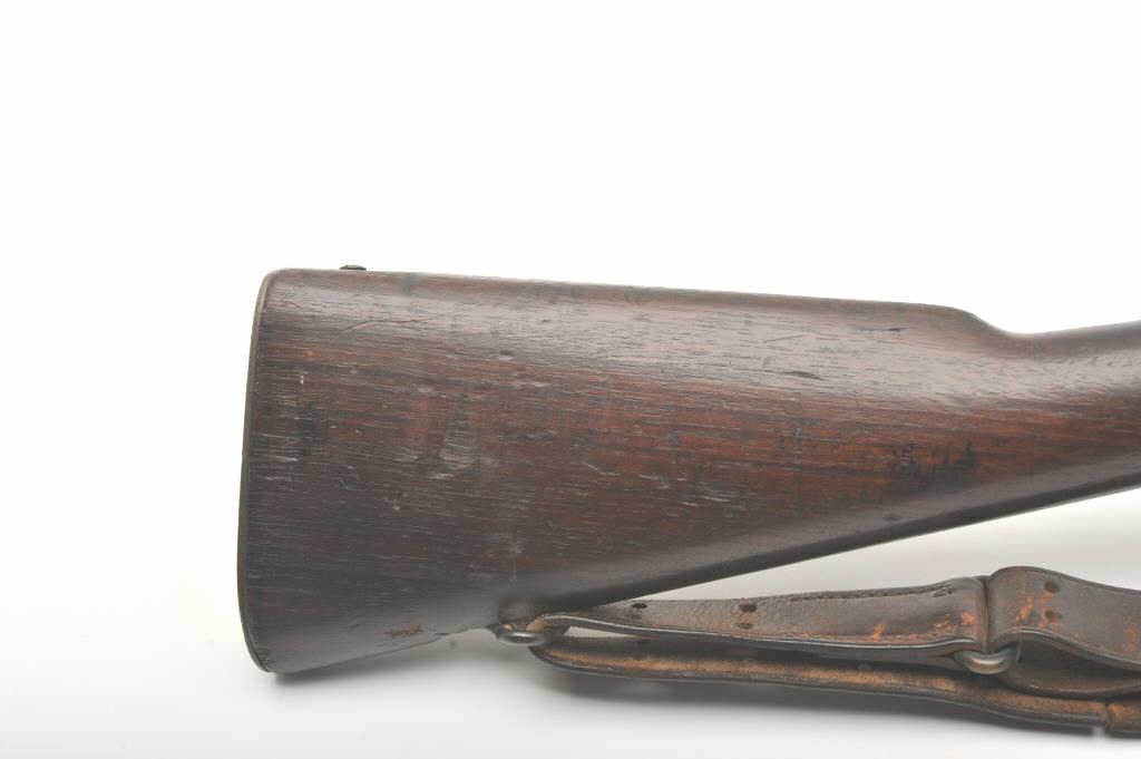 U.S. Springfield Model 1903 bolt action rifle, .30-06 caliber, 24” SA barrel dated 6-19, military finish, wood stock, leather sling, S/N 781931; overall good to very good condition with majority of military finishremaining, good to very good bore, crisp action and markings, good stock with circle P and square P proofs, L.S.A.A. in rectangle cartouche on right side of stock below breech, 32 over ENT on right side of buttstock plus JHW cartouche on left side of stock above trigger guard. (C&R). Est.: $400-$800.