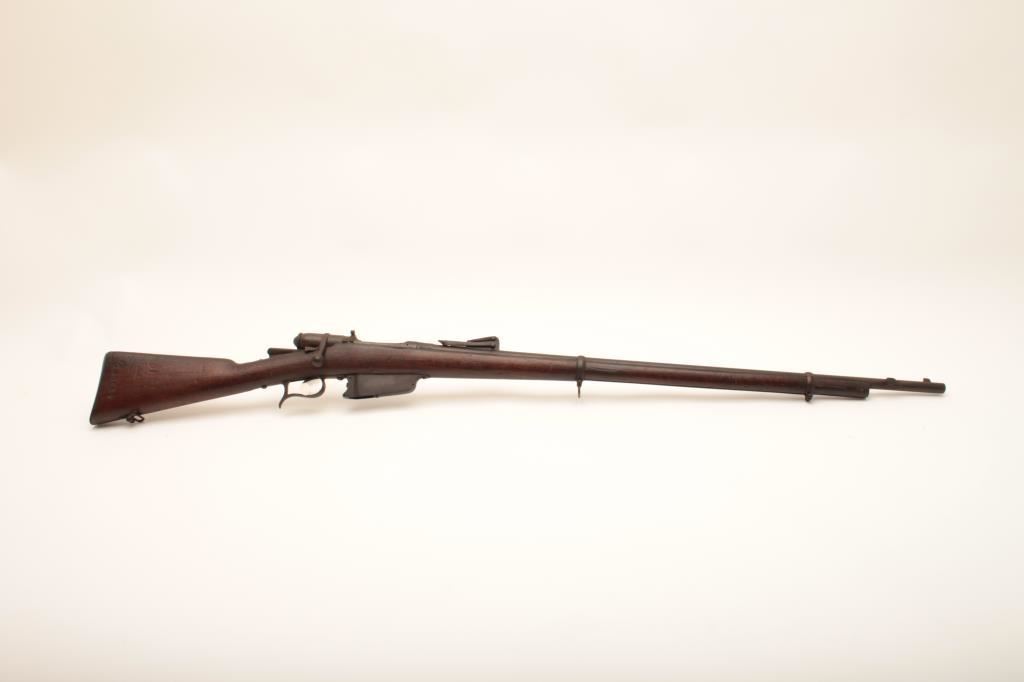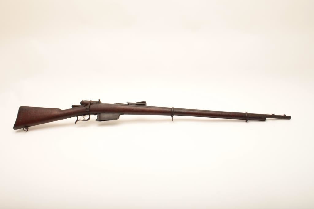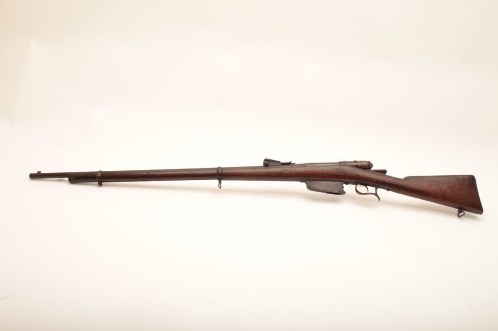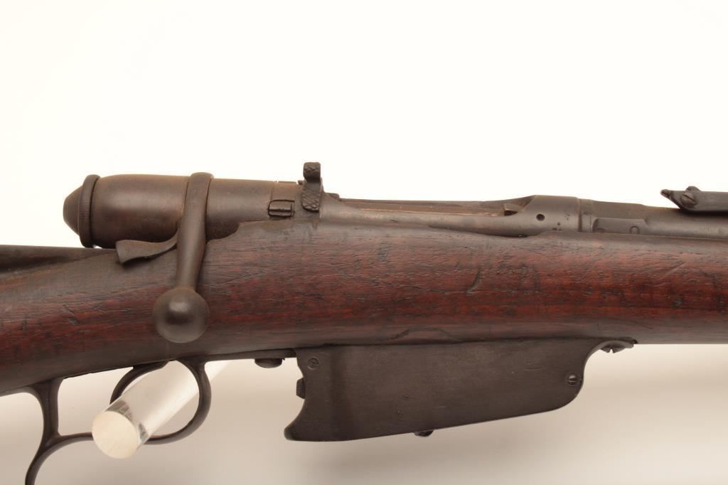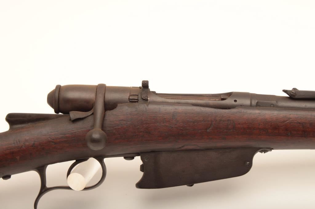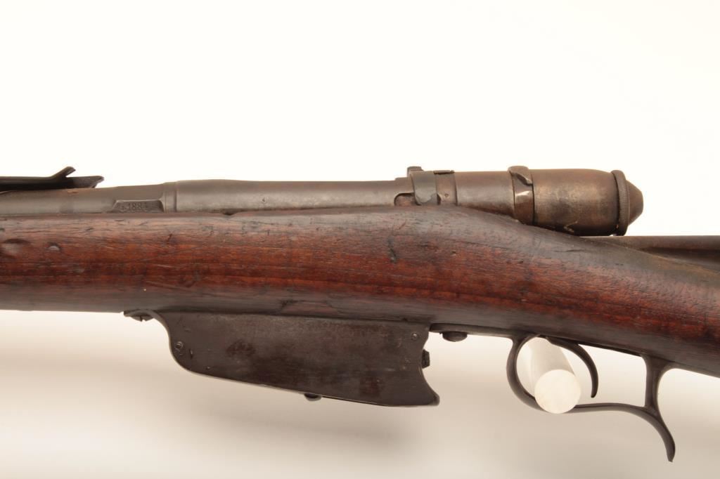 Italian Vetterli bolt action rifle, 6.5mm caliber, 33” barrel, blued finish, wood stock, missing cleaning rod, S/N CH3747; un-cleaned “out-of-attic” condition with bore that may clean to good, good action and markings, wood stock is overall good and numbered to this gun. (Antique). Est.: $150-$300.