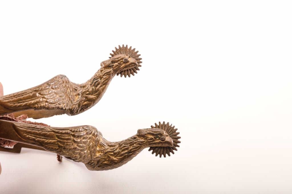 Pair of antique Officer’s spurs cast as eagles with small rowels; beautiful patina. Est.: $400-$800.