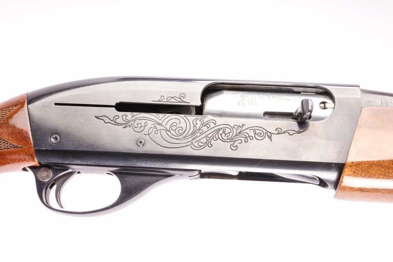 Remington Model 1100 semi-automatic shotgun, 12 gauge, 30” barrel, blued finish, checkered finely grained wood stocks, S/N 292048V; overall fine condition with majority of original blued finish remaining on metalsurfaces, fine bore, crisp action and markings, fine wood stocks. (Modern). Est.: $300-$600.