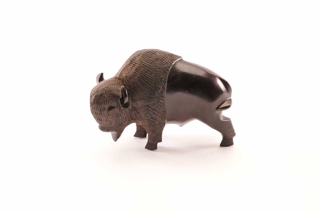 Hardwood carving of a buffalo, approximately 6” in height and 10” in length; repair to rear left leg, missing portion of lower rear right leg. Est.: $50-$100.
