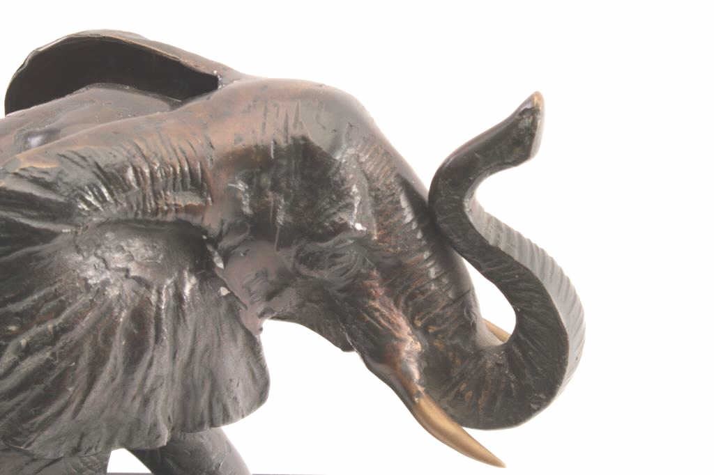 Un-marked bronze on stone base of elephant; approximately 10” in height including base. Est.: $150-$300.