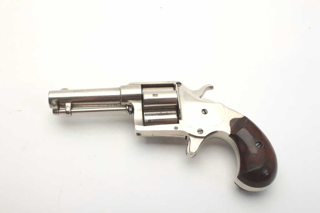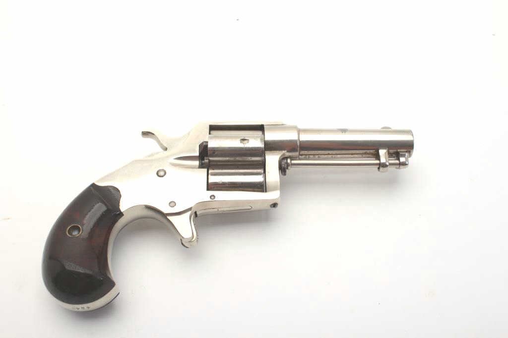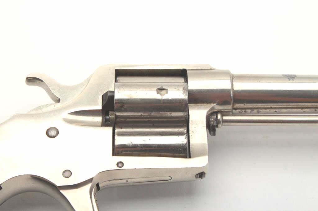 Colt Cloverleaf Model spur trigger fluted cylinder revolver, .41 caliber, 3” barrel, nickel finish, wood grips, S/N 4245, overall fine condition showing majority of original nickel finish, crisp action, sharp markingsand overall fine grips. A very desirable pocket size 4-shot model in great condition! (Antique). Est.: $900-$1,800.