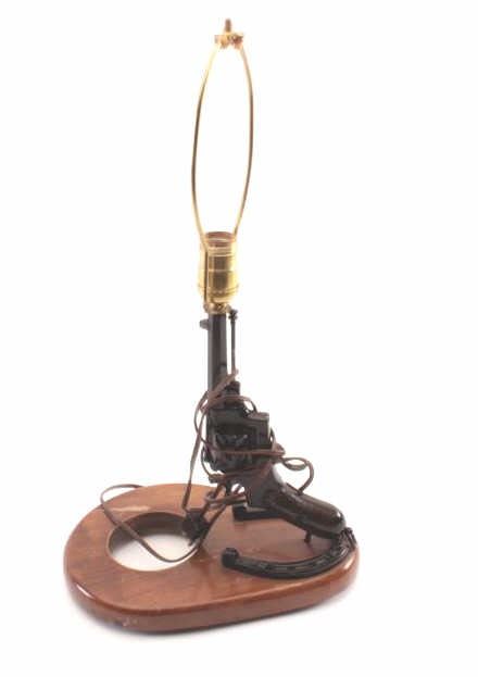 Italian Double Action antique 1890s revolver converted to lamp by Bannermans. 1940s-50s. Needs rewiring. Est.: $75-$150