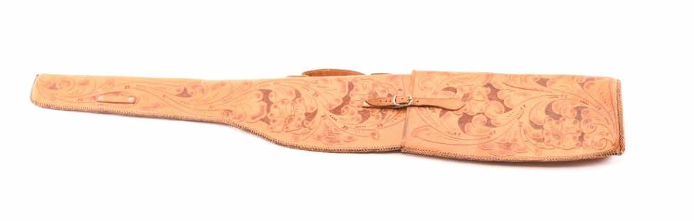 Tooled leather two piece scabbard for a rifle with scope; overall good condition; no maker’s marks. Est.: $50-$75.