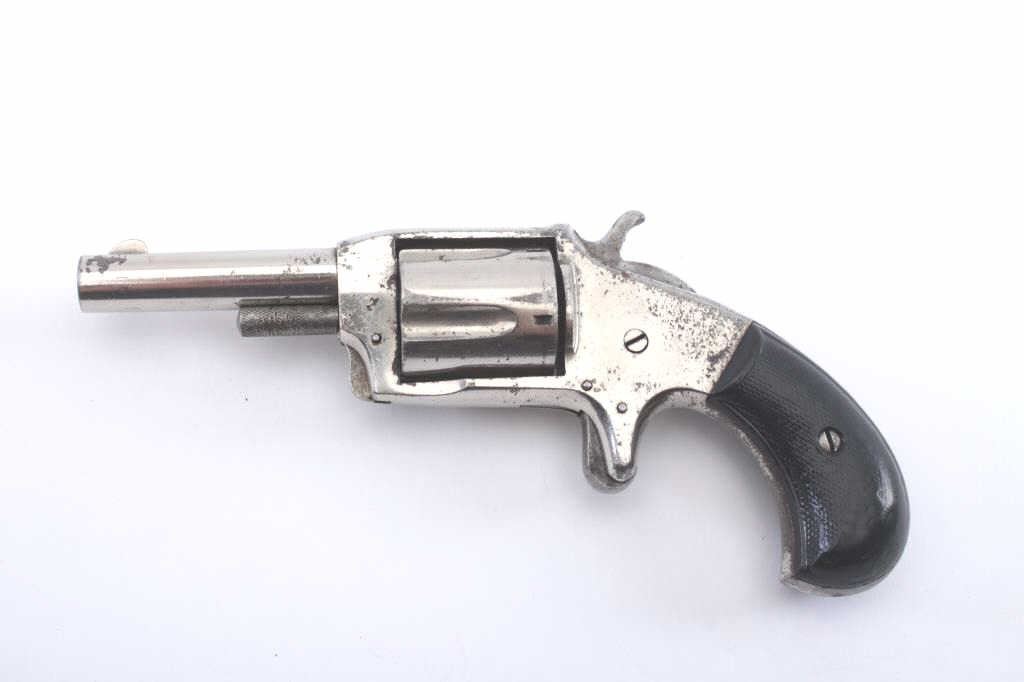 Iver Johnson Defender single action pocket revolver, .32 caliber, Serial #NSNV. The pistol is in very good overall condition with a 2 ½” barrel. The pistol retains the majority of its nickel finish with areas ofloss at the muzzle and rear of the action. The checkered hard rubber grips are in good condition showing moderate wear and use. The bore is fair, the action functions and the markings are sharp on this Iver Johnson circa 1875 to 1888. Est.: $200-$400. (Antique).