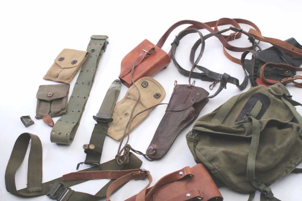 Lot of genuine U.S. and foreign military holsters, belts, mag pouches, straps, carriers and Etc. from WWII to 1960. Various conditions. Great for dealer. Est.: $175-$350