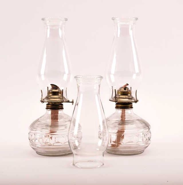 Two kerosene lamps 19th century. Matching. Marked but illegible. Est.: $75-$150