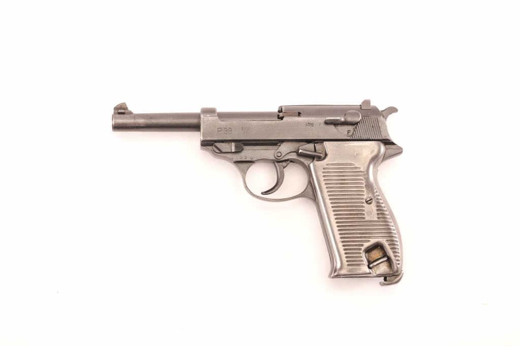 SVW 1945 German P.38 in 9mm showing French markings and metal grips, S/N 61529 with import markings. Waffen proof. Refinished to excellent. Good bore. (C&R/PPT) Est.: $350-$700