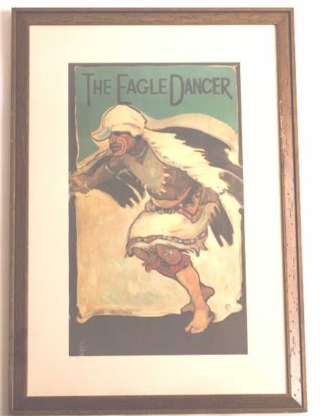 Lithograph print by Taos artist Gerald Cassidy entitled “The Eagle Dancer”. Measures approximately 27” x 16” image only. Nicely framed and matted. Est.: $175-$350