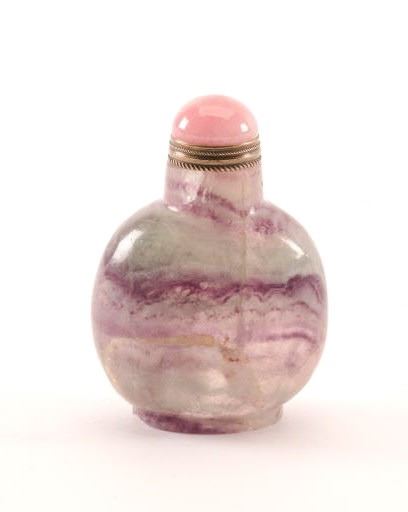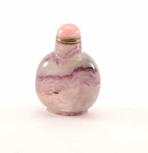 Purple hardstone snuff bottle with pink stone top. Circa about 1900. China. Est.: $75-$150