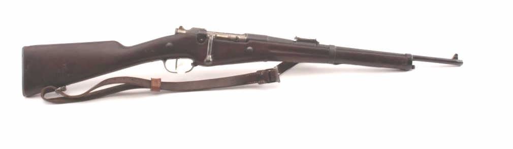 French Berthie model 1892 carbine, #83903, 8mm Label cal., 18" barrel. Rifle is in overall good condition, with good action, fair bore, stock is good. Includes original sling in good condition. A rare littlecarbine. (Antique) Est. $150-300