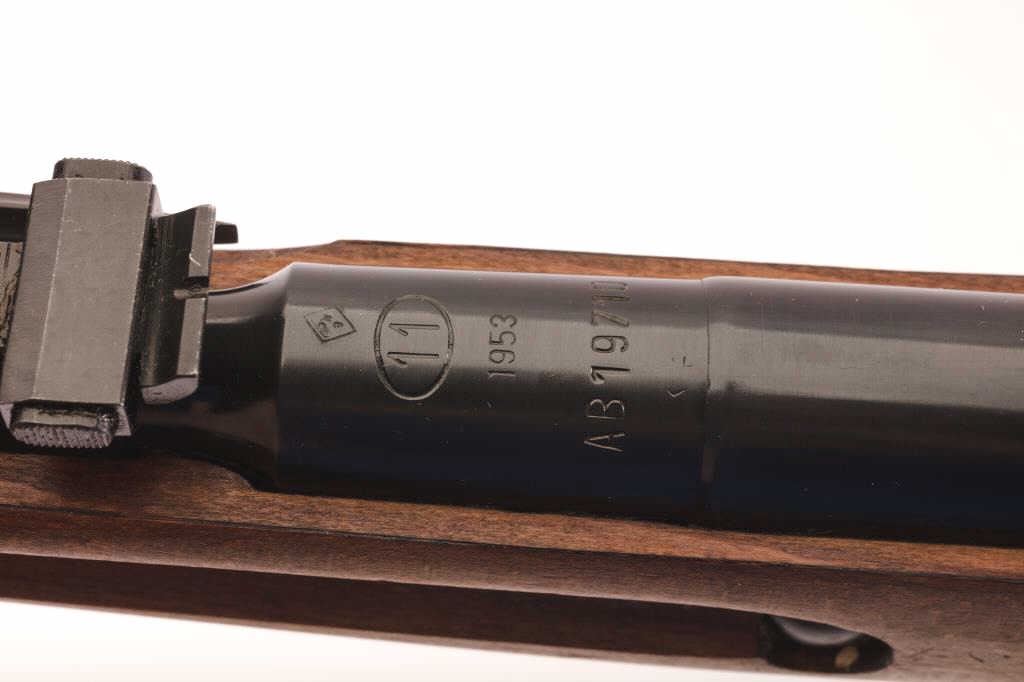 Polish Mosin Nagant M-44, #AB19710, 7.62x54R cal., 21" barrel, blued finish, adjustable sights, with folding bayonet. Rifle is in as new condition, with just slight bluing wear at the muzzle from the bayonet, still covered in cosmoline. (C&R) Est. $150-300