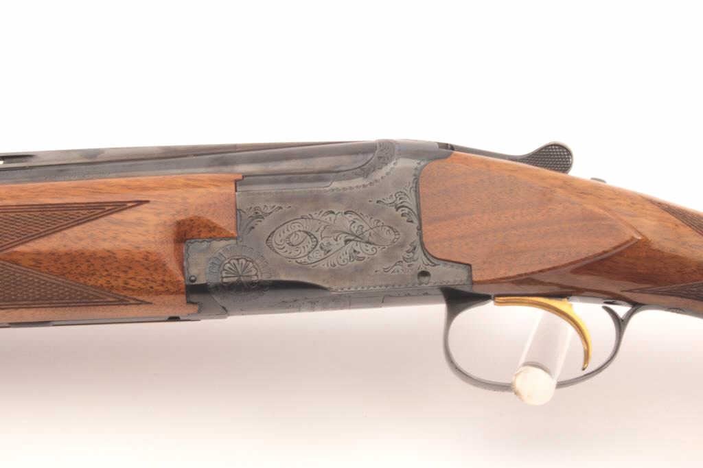 Browning Lightning Superposed 20GA O/U Shotgun, Belgium made with long tang and round knob, S/N 40715V6 with 28” barrels choked full and modified. 96%-99% with minor use. Luggage case included. Original buttplate. (Modern) Est.: $1500-$3000