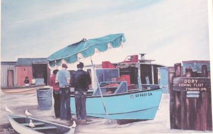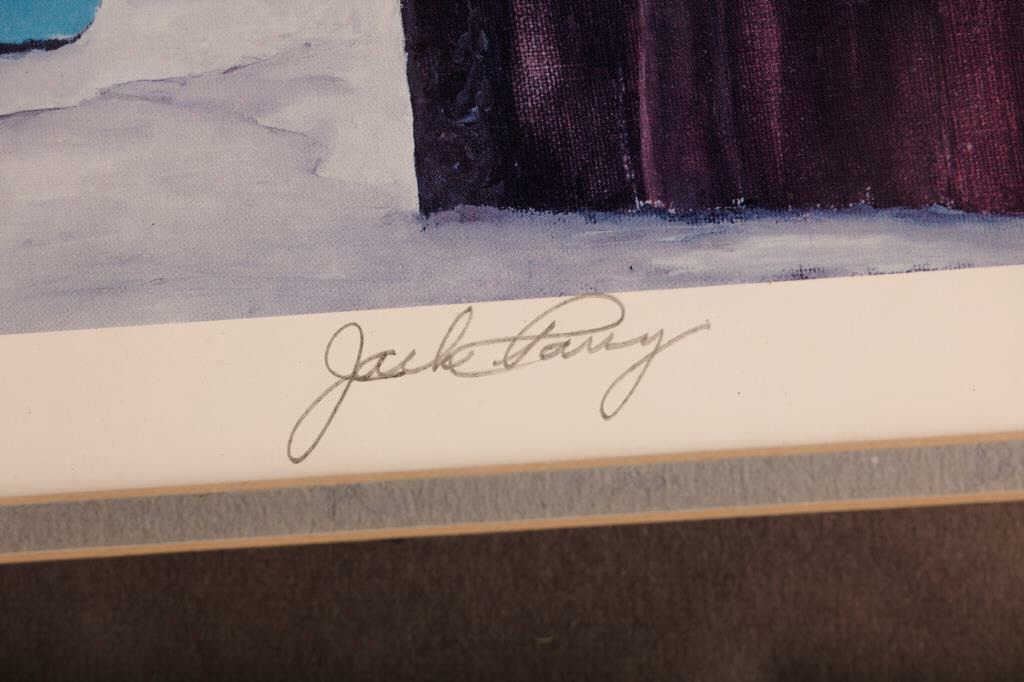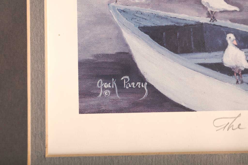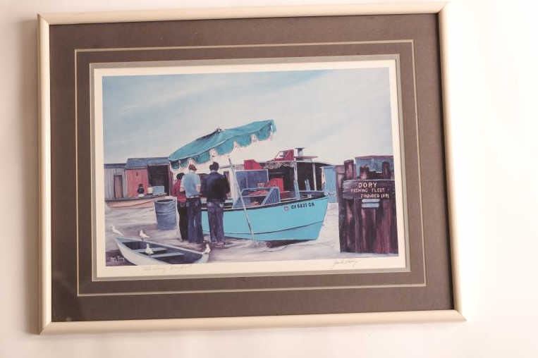 Jack Parry framed and matted print marked, “The Dory, Newport”. The piece is 19” x 13” and signed in pencil in the bottom right corner. The piece is professionally framed with a nice double matte. The work depictsthe Dory Fleet at Newport. A nice piece by a local artist. Est.: $100-$200.