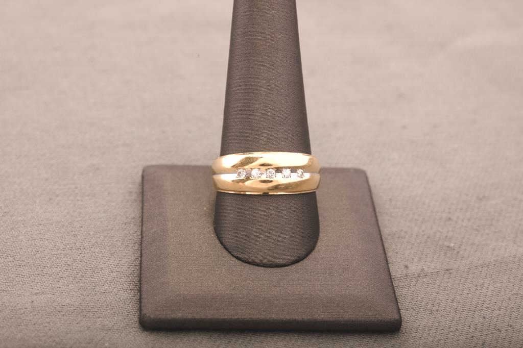 One gents diamond band containing 5 diamonds made in 14k yellow gold Est:$250-500