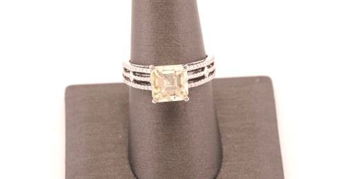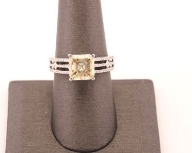One 3 ct champagne color princess cut diamond set in a 3 stem micro set ring in 14 k white gold Est:$3750-7500