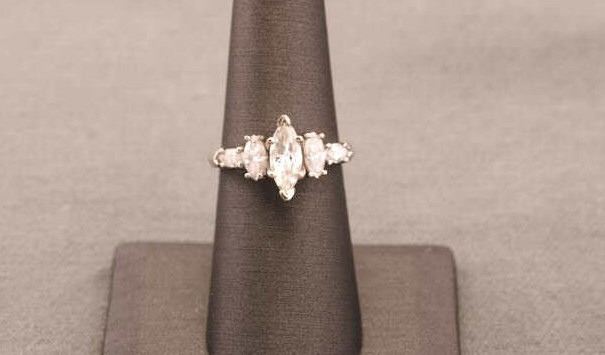 One 5 marquee diamond ring in 14k white gold, with center approx.0.80ct total weight of 1.60cts in diamonds Est:$1750-3500