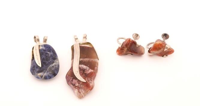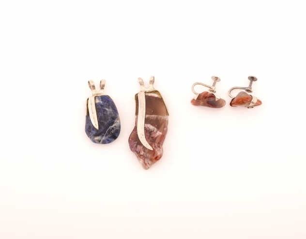 Handmade natural polished agate designed into 2 pendants and a matching pair of earrings in sterling silver Est:$75-150