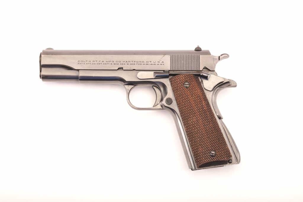 Pre-War Colt 38 Super Auto. With all correct 7 milled parts and early 2-tone Colt marked magazine, S/N 28677. In fine to excellent original condition with 97-99% original blue. Has near excellent grips, sharp markings,and bright bore. Overall shows minimal handling and use. A 9.5 on a 1-10 scale its very desirable to Colt pre-war auto collectors. All correct. Est.: $3,000-6,000